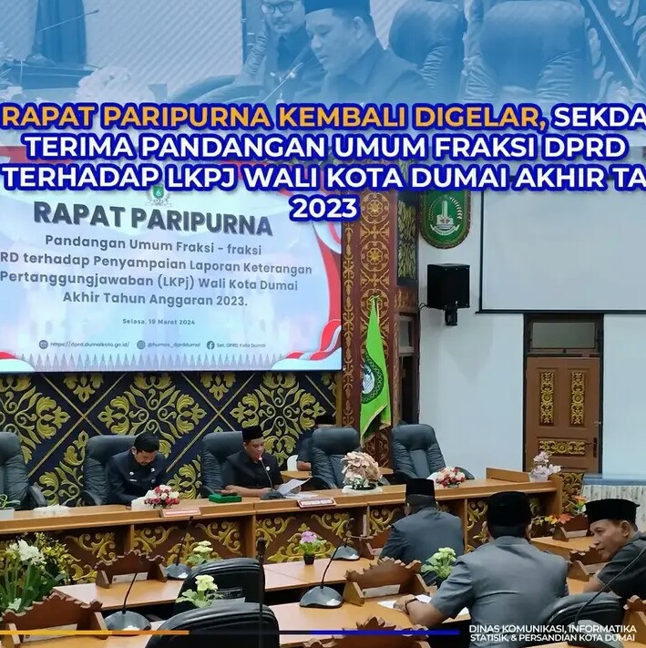 DUMAI(RIAU) mediakompas86.com – Wali Kota Dumai dalam hal ini diwakili Sekretaris Daerah (Sekda) H. Indra Gunawan mendengar pandangan umum fraksi-fraksi DPRD Dumai terhadap penyampaian LKPj akhir tahun 2023 dalam rapat paripurna yang diikuti anggota DPRD Kota Dumai, Selasa (19/3/2024).