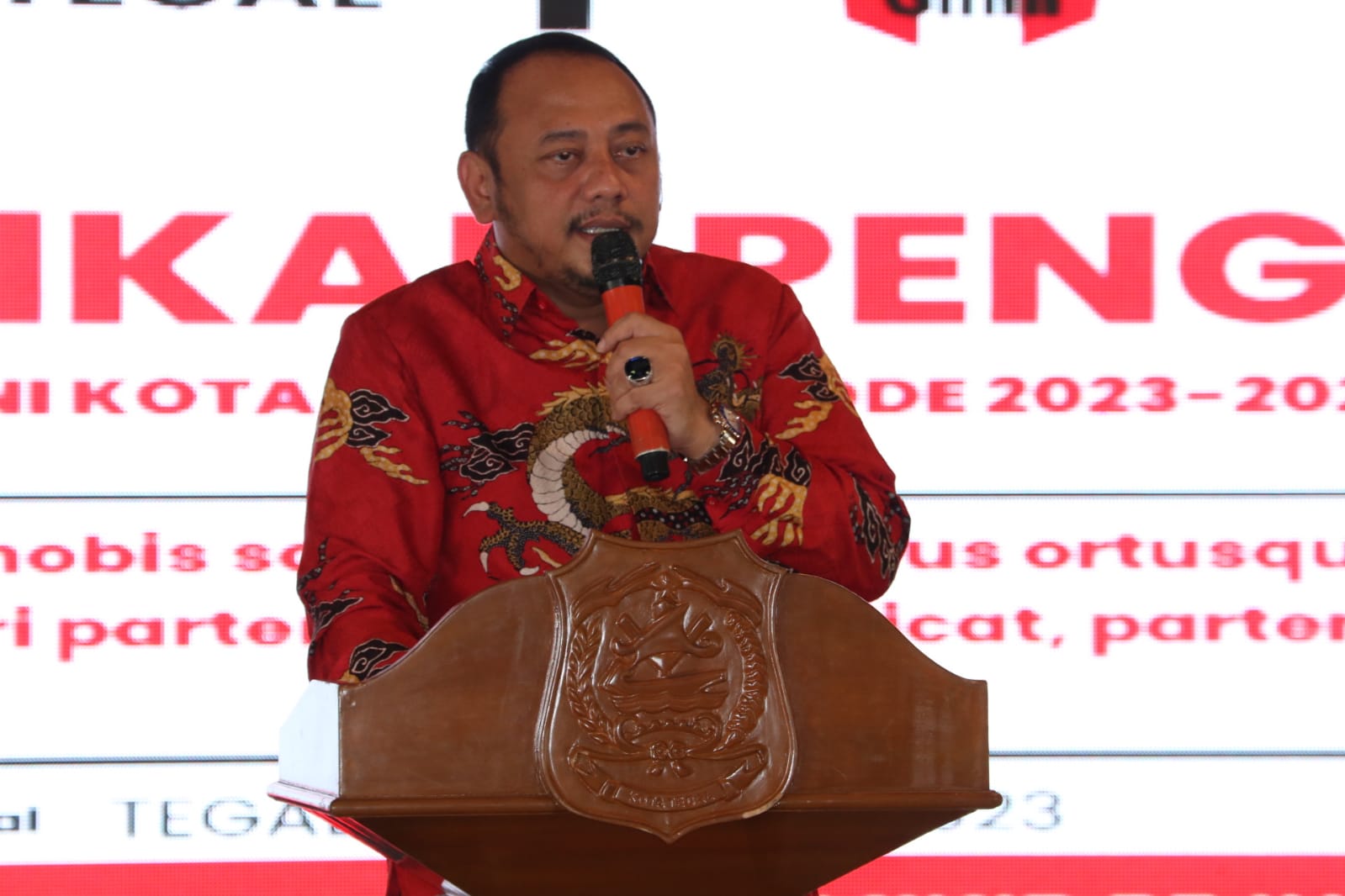 Wali Kota Tegal, Dedy Yon Supriyono yang hadir secara langsung pada acara pelantikan tersebut menyampaikan ucapan selamat kepada pengurus DPC GmnI Tegal yang baru dilantik.