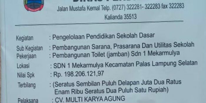 “Melihat progres hasil pekerjaan proyek itu, saya rasa tidak sepadan dengan nominal anggaran yang telah dikucurkan pemerintah. Kalau hanya membangun toilet seperti itu, tidak harus Rp198 juta sudah cukup,” ujarnya.