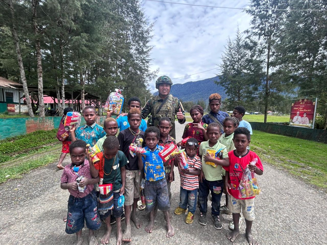 PUNCAK, Mediakompas86.com – Satgas Yonif 323/Buaya Putih Kostrad melalui TK Kosatgas dan Kodim Perdiapan dalam kedekatannya dengan anak-anak memberikan sesuatu yang sedikit berbeda. Dimana Satgas Yonif 323/Buaya Putih Kostrad membagikan anak-anak makanan dan permen di wilayah Distrik Ilaga, Kab. Puncak, Provinsi Papua Tengah, Rabu (12/02/25)