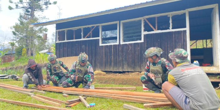 PUNCAK, Kompas86id.com — Di tengah sejuknya udara pegunungan Papua, prajurit TNI dari Satgas Yonif 700/WYC melalui Pos Titik Kuat Bendungan kembali menunjukkan kepedulian mereka kepada masyarakat. Kali ini, mereka melaksanakan kegiatan Binter terbatas berupa karya bhakti membantu rehabilitasi Sekolah SMA Kristen Omukia, Distrik Omukia, Kabupaten Puncak. (28 Oktober 2025)