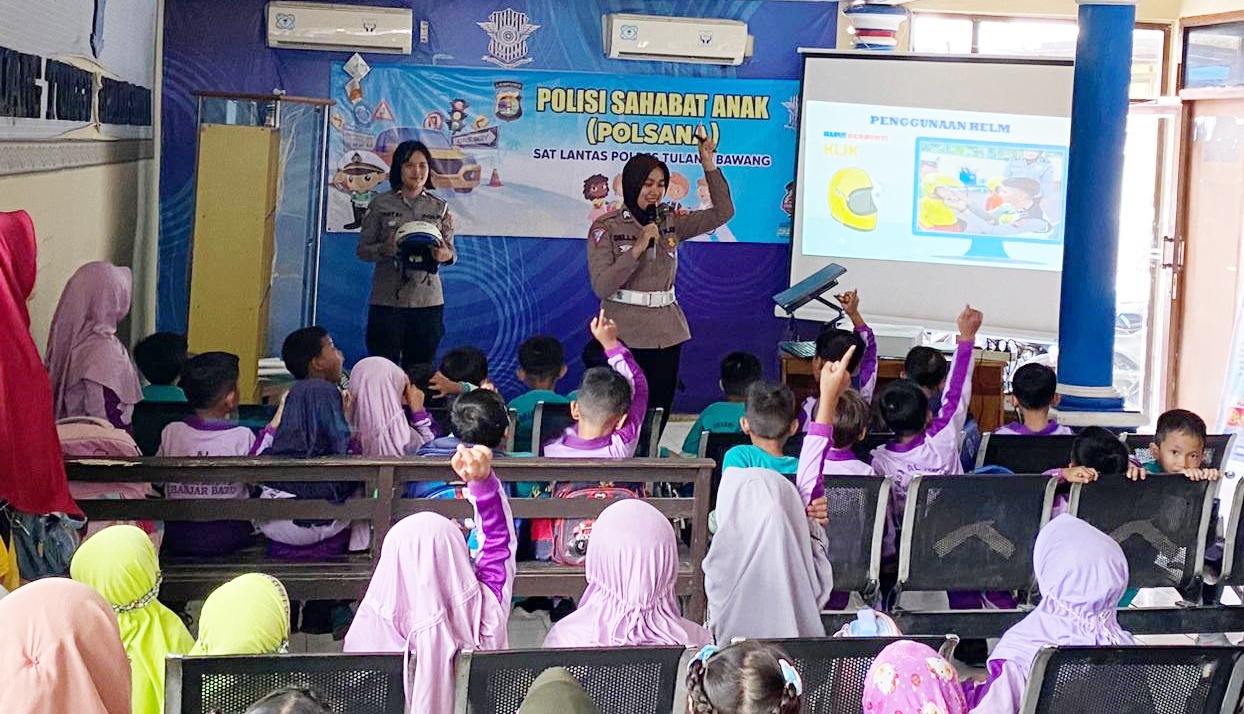 Tulang bawang,mediakompas86.com Satuan Lalu Lintas (Sat Lantas) Polres Tulang Bawang, Polda Lampung, menggelar kegiatan Polisi Sahabat Anak (Polsana) guna memberikan edukasi sejak ini kepada anak-anak terkait aturan dalam berlalu lintas.