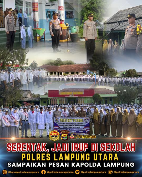Kapolres Lampung Utara AKBP Teddy Rachesna, S.H., S.I.K., M.Si. mengatakan, hari ini kita secara serentak mendatangi SMA/SMK yang ada di wilayah hukum Polres Lampung Utara untuk menjadi irup dan menyampaikan amanat dari Bapak Kapolda Lampung.