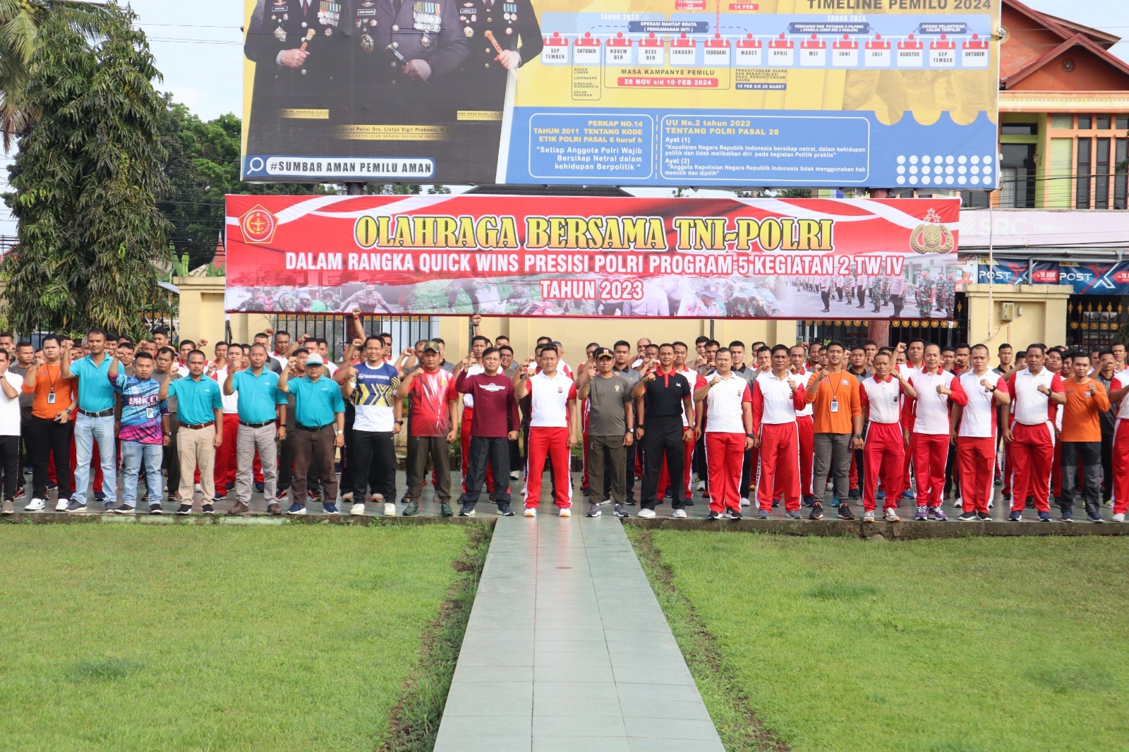 Pasaman Barat, Sumatera Barat, mediakompas86.com. – Jalinan kerja sama sinergitas TNI Polri terus ditingkatkan dalam berbagai upaya yang dilakukan, antara lain dengan berolahraga bersama, seperti yang dilaksanakan Polres Pasaman Barat dan Kodim 0305/Pasaman bertempat dihalaman Mapolres setempat, Jumat (24/11/2023) pagi.