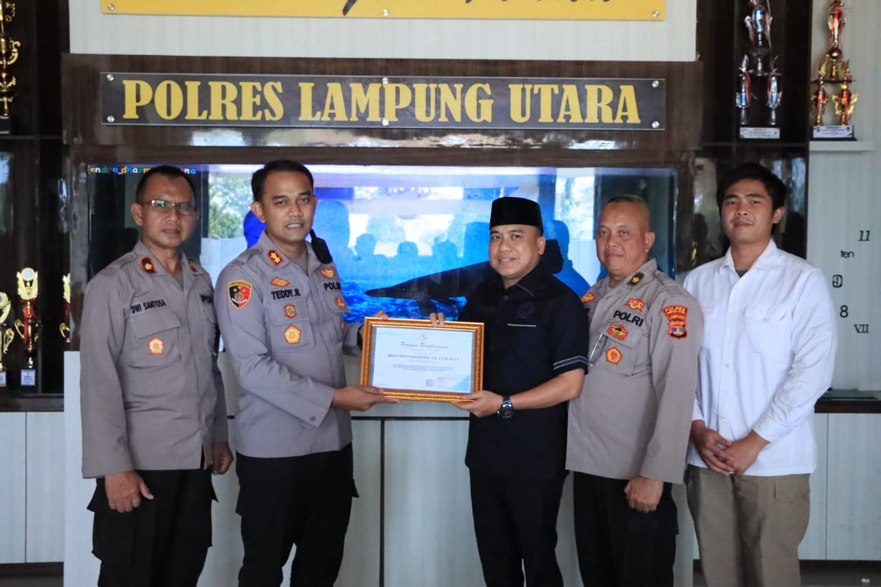 Apresiasi tersebut diberikan melalui piagam penghargaan yang diserahkan langsung oleh ketua DPRD Wansori kepada Kapolres Lampung Utara AKBP Teddy Rachesna, S.H., S.I.K., M.Si. di mapolres setempat.